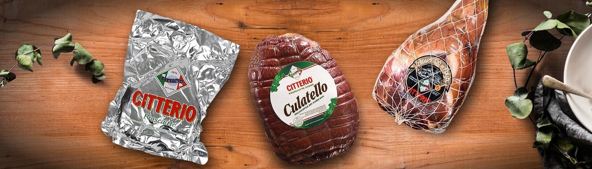 slightly smoked ham without preservatives and the “Poggio” Casa Citterio’s sweet ham. Many types of tasty ham for every one.