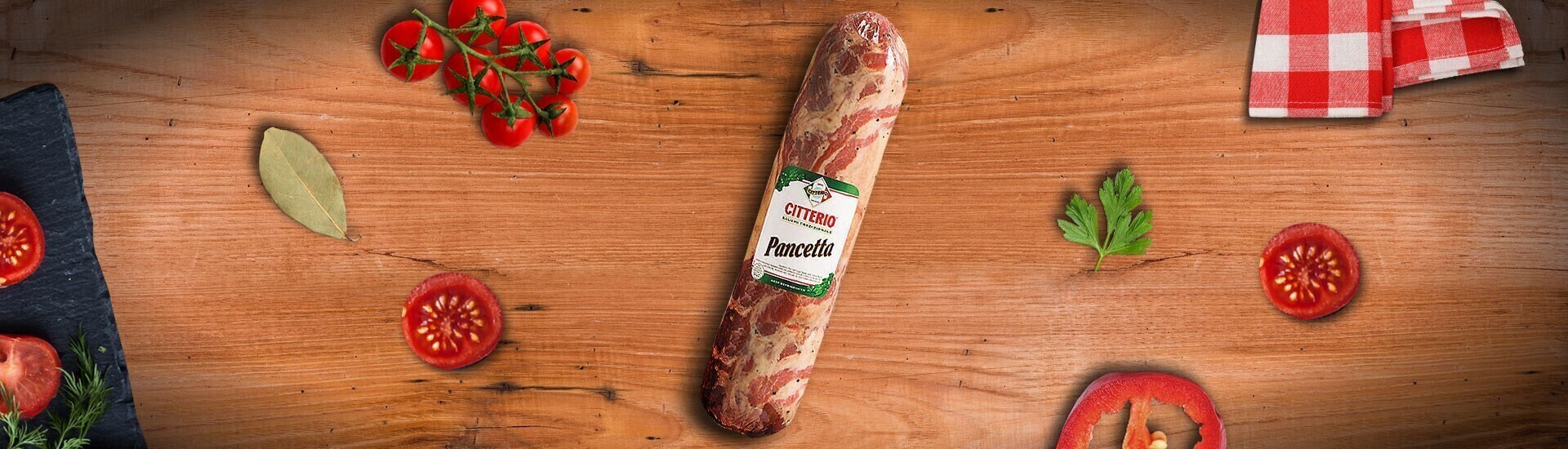 Citterio produces its pancetta from the underbelly of Italian pork, in its classic formats: wrapped pancetta, smoked, thin-sliced pancetta, sweet, thin-sliced pancetta
