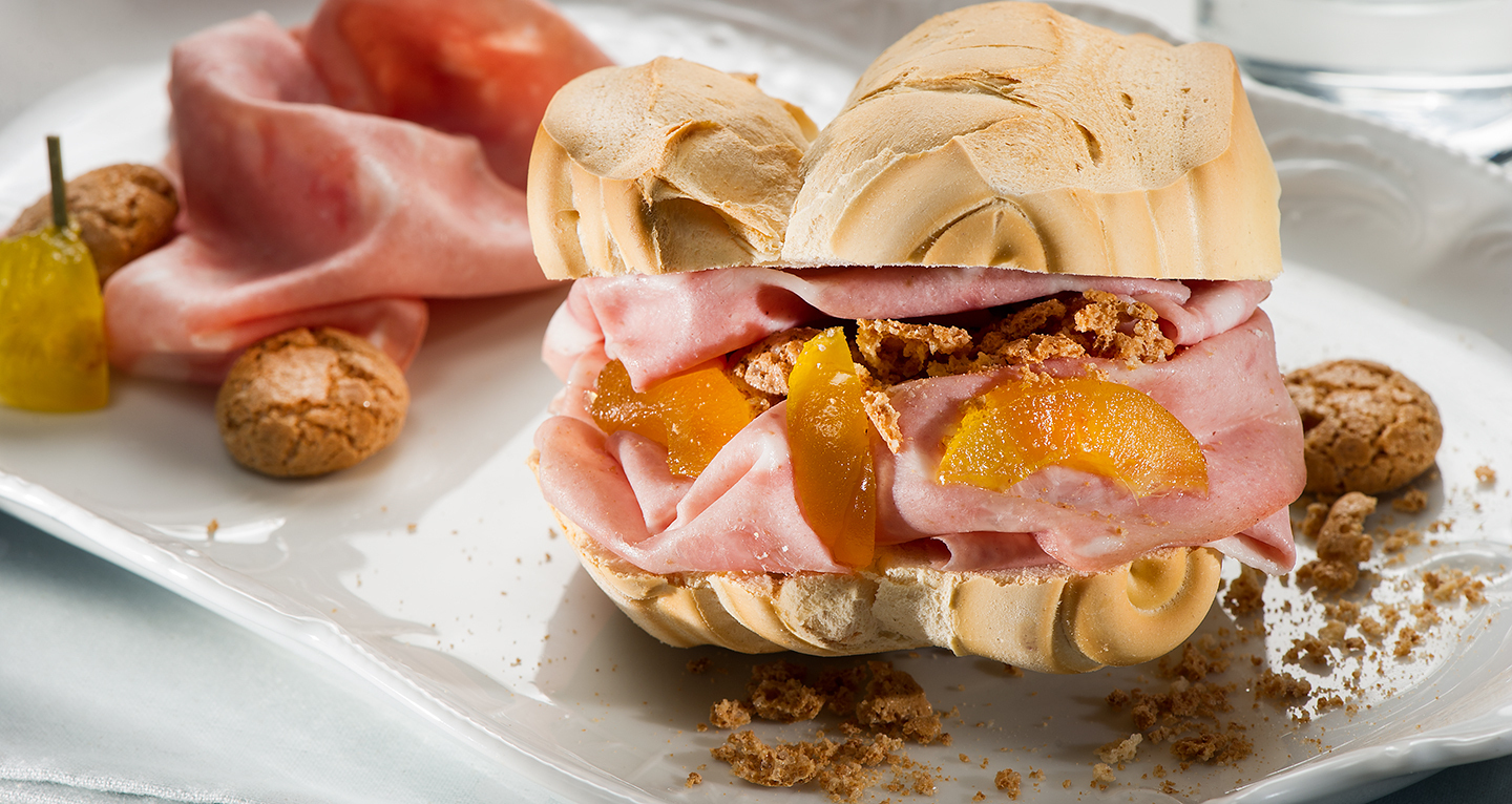 Ferrara bread, Bologna, fruit mustard from Mantova and amaretto crumbs