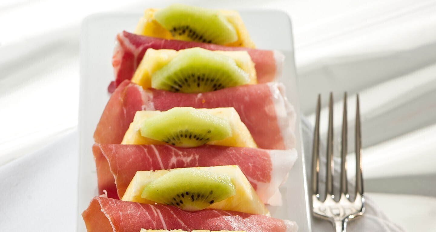 Parma ham with pineapple and kiwi