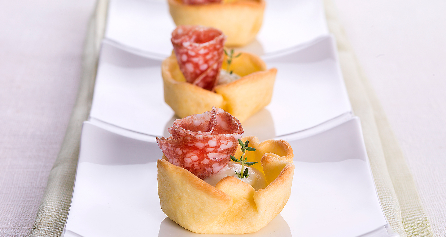 Tartlet with stracchino cheese aromatised with thyme and Salame di Milano